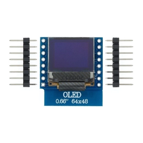 O Display OLED 0,66″ 64x48 I2C consiste num Shield para uso com a Placa ESP32 D1 Mini. Possui escrita branca, comunicação I2C, resolução de 64x48 pixels com alto contraste e excelente nitidez, sendo ideal para projetos compactos alimentados por pilhas ou bateria já que o display OLED requer baixo consumo de energia para funcionar.
