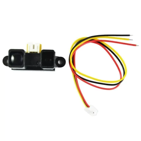 O sensor de distância infravermelho GP2YA02YK0F fabricado pela Sharp é capaz de medir distâncias desde 20cm até 150cm. Possui saída analógica, facilitando assim o seu uso com microcontroladores.
